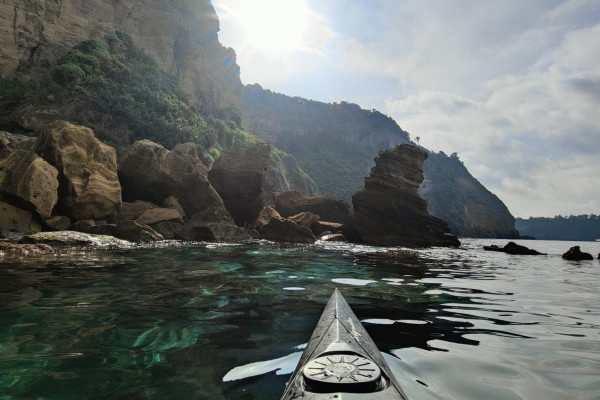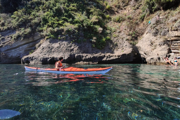 This is a naturalistic itinerary, which will allow you to visit the most unspoilt areas of the island. We will paddle in a former volcanic crater, the Gulf of Genito, observing the islet of Vivara (Nature Reserve). Once we reach the bay of 'Sciuscedda', it will be possible to snorkel without even having to get out of the kayak thanks to the crystal-clear and shallow waters. Finally we will arrive at Pozzovecchio Bay, set of the film 'Il Postino' with Massimo Troisi. Here we will stop for a break on the beach, refresh ourselves with breakfast and coffee and a regenerating dip in the sea, before departing for the journey back to the harbour along the same route.